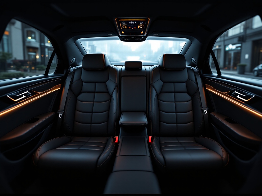 Handcrafted black leather interior with ambient lighting